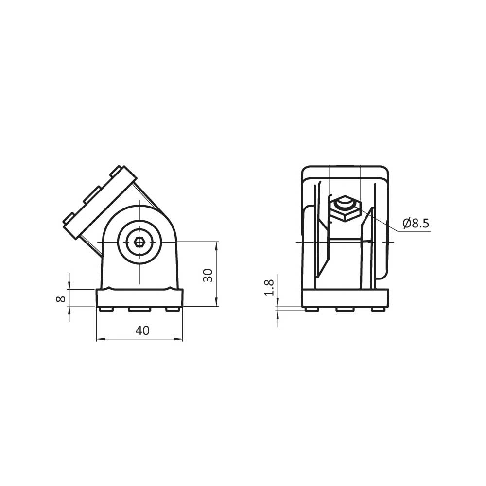 Gelenk mit Klemmhebel 40 - Nut - Nut