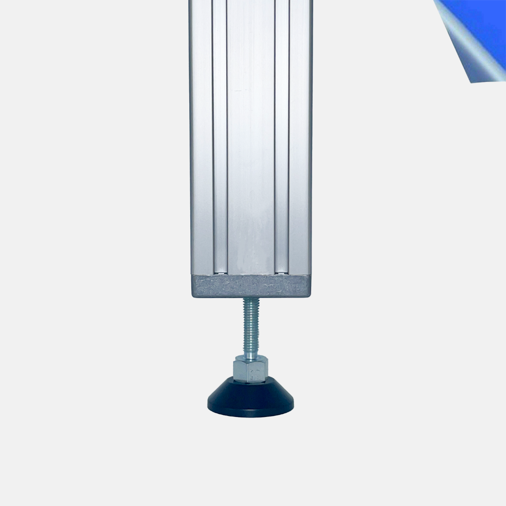 Komplettset zur Montage eines festen Stellfußes mit M12-Aufnahme. Ideal zur stabilen Justierung von Maschinenrahmen, Arbeitsplätzen, Gestellen oder Transportlösungen. Die Trapez-Tellerform aus schwarzem Zinkdruckguss sorgt für festen Stand, während die mitgelieferte Gummischeibe für vibrationsdämpfende Eigenschaften sorgt.