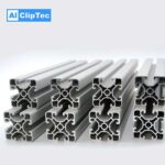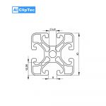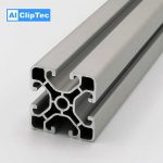 Aluprofil AlClipTec 40×40 SUPERLEICHT Nut 8 – I-Typ, hat 4 offene Nuten. Es ist die leichtere Variante vom 40×40 Aluprofil und genauso vielseitig und flexibel einsetzbar. Dieses universelle Konstruktionsprofil ist bestens geeignet für belastungsoptimierte Projekte wie Vitrinen und Montageflächen.
